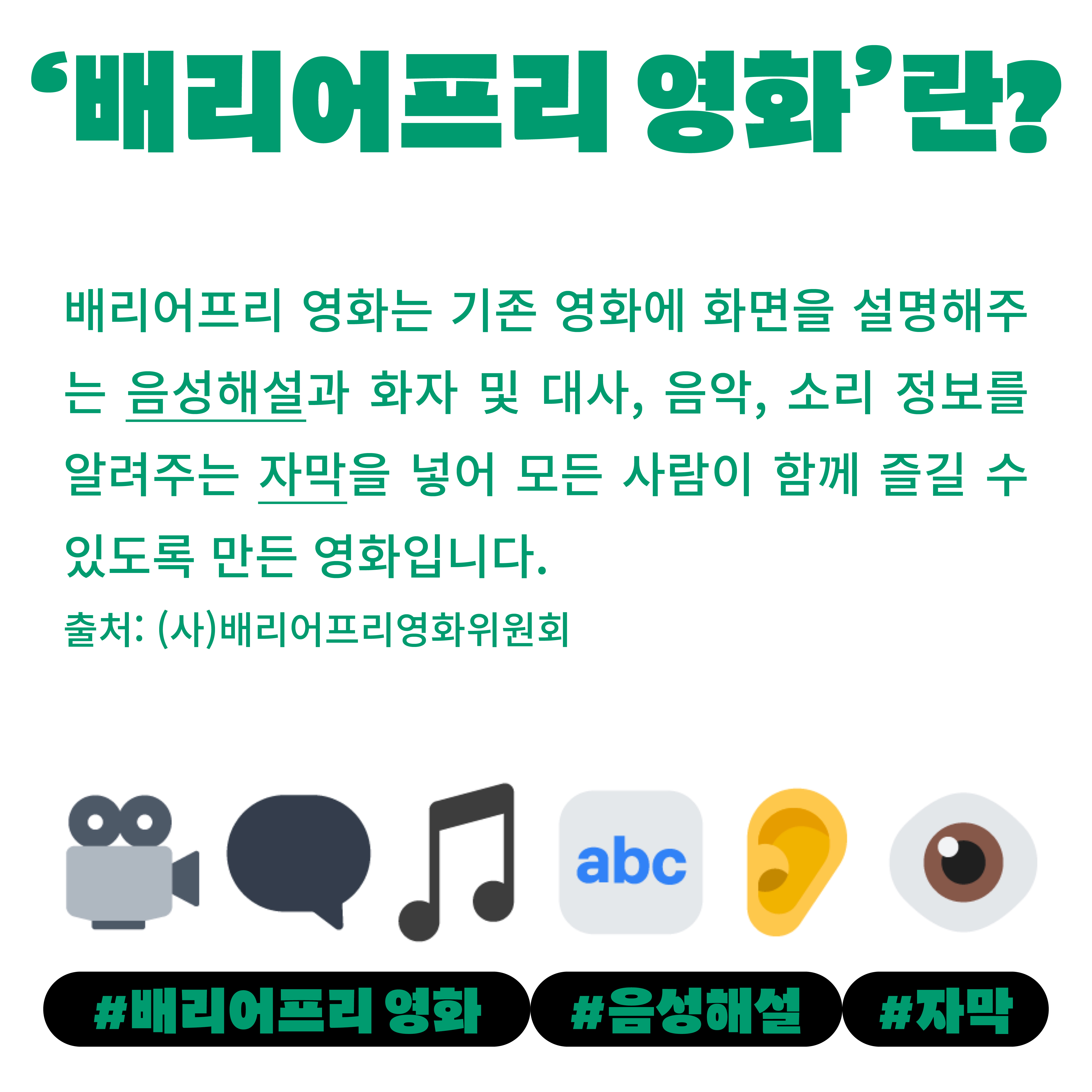 *영화가 배리어프리일 때 더 재밌게 즐길 수 있는 분들이 주변에 있다면 많이 알려주세요.