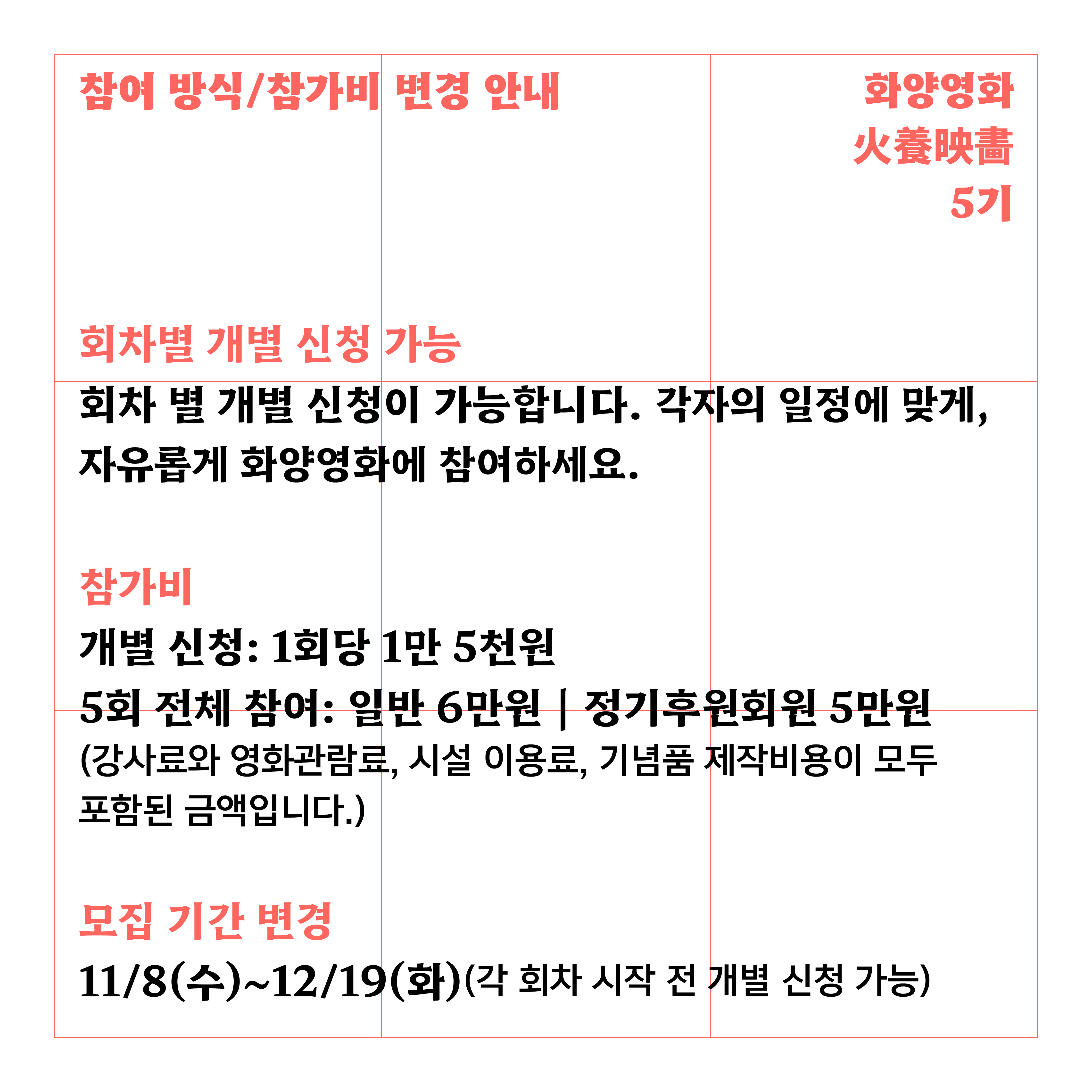 📢 관객 소모임 「화양영화火養映畵 」 5기 회차별 개별 신청 안내