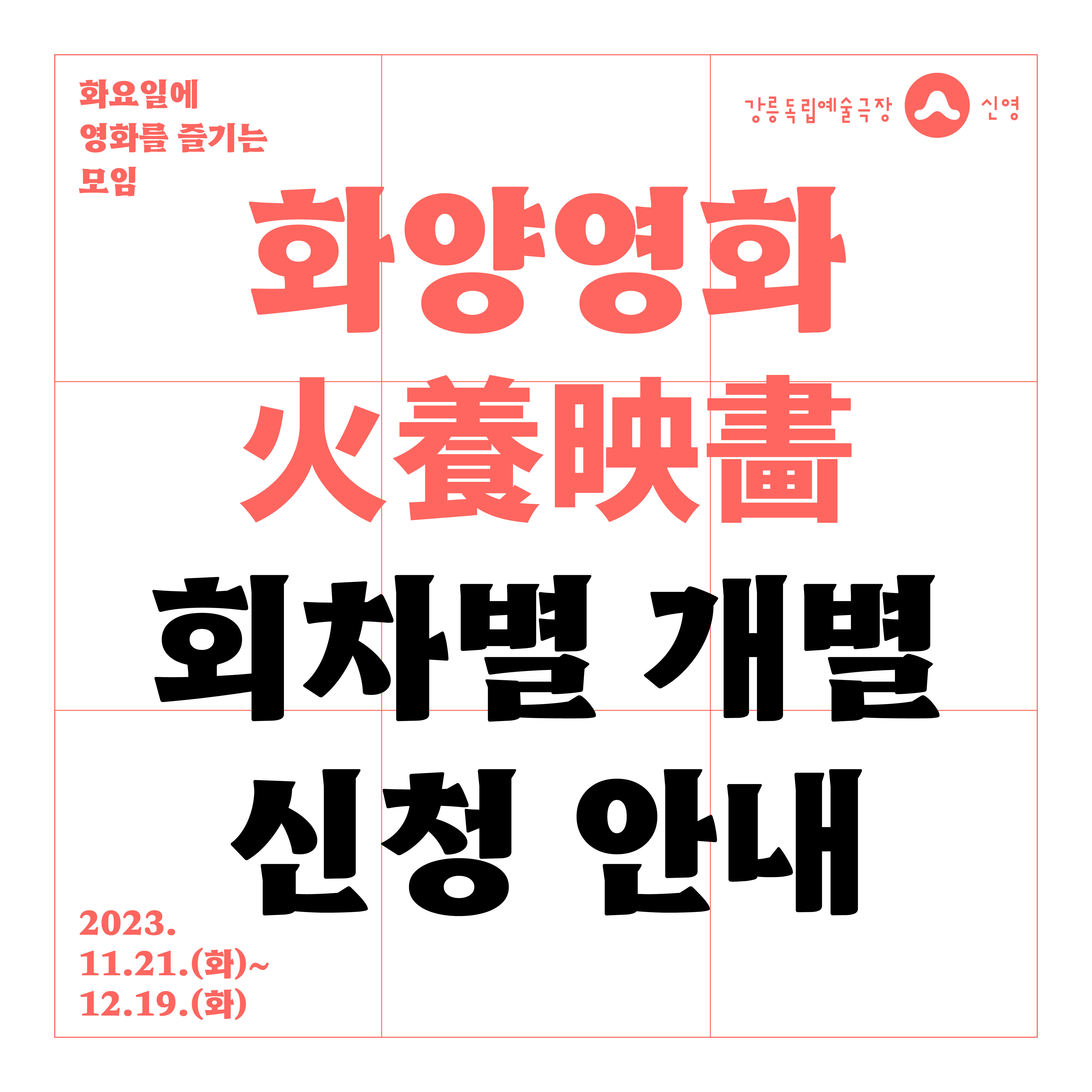 | 火養映畵 [화양영화: 화요일에 영화를 즐기는 모임 5기 모집] (0) | 2023.11.08 |