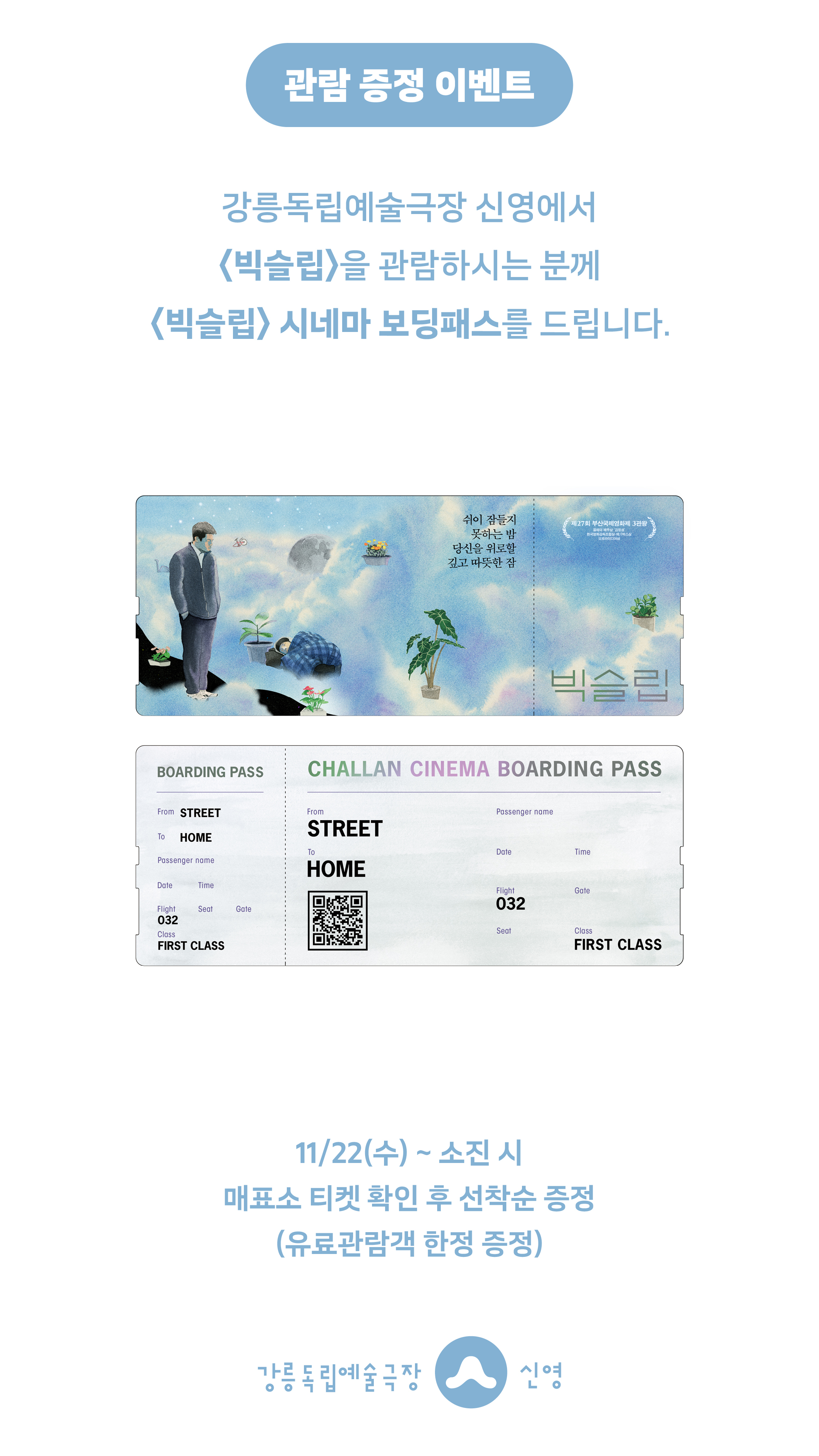 강릉독립예술극장 신영에서 <빅슬립>을 관람하시는 분께 선착순으로 <빅슬립> 시네마 보딩패스를 드립니다.