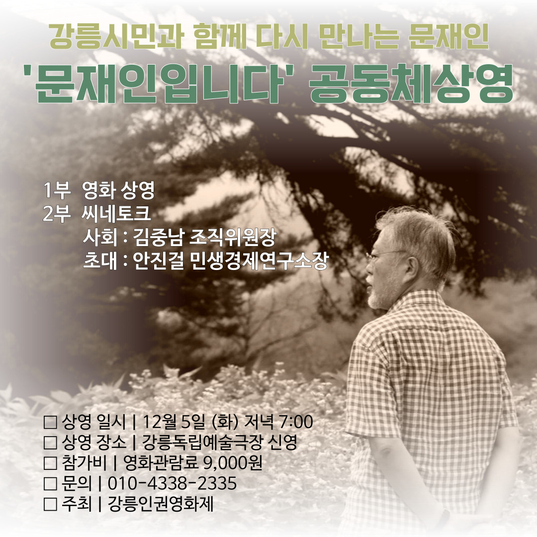 강릉인권영화제에서 공동체상영으로, <문재인입니다>를 강릉독립예술극장 신영에서 상영합니다.