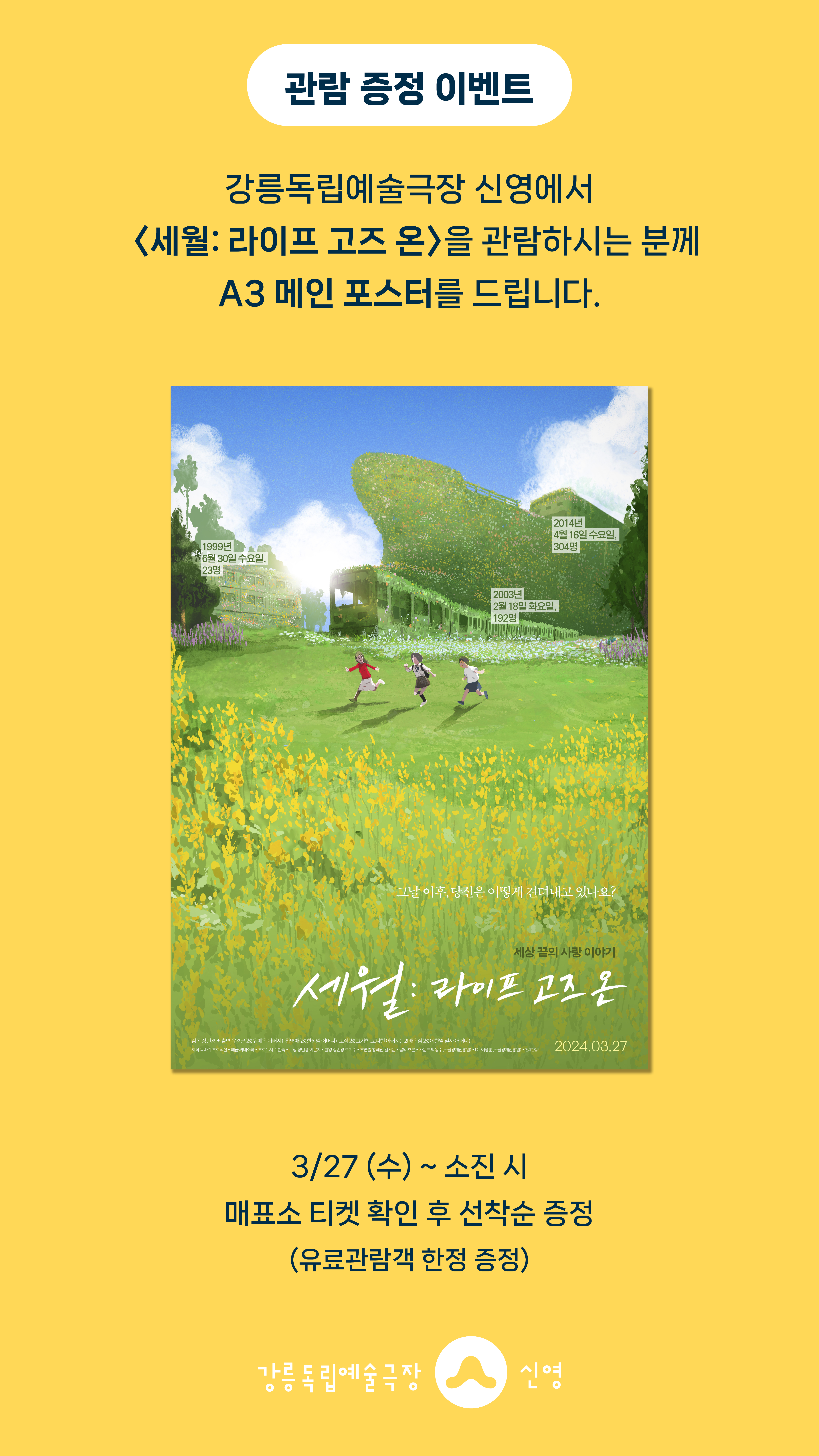 강릉독립예술극장 신영에서 <세월: 라이프 고즈 온>을 관람하시는 분께 선착순으로 <세월: 라이프 고즈 온> A3 메인포스터를 드립니다.