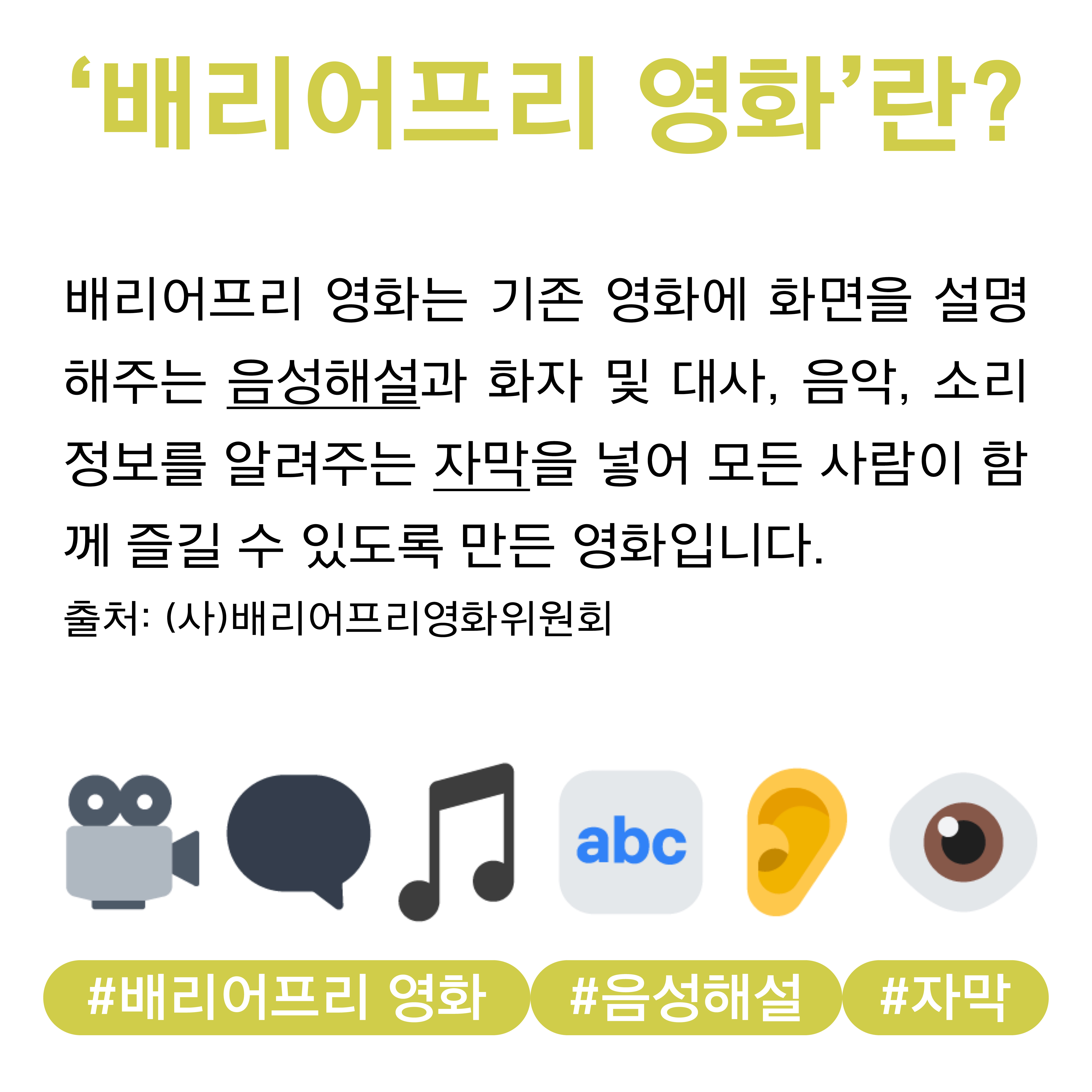 *영화가 배리어프리일 때 더 재밌게 즐길 수 있는 분들이 주변에 있다면 많이 알려주세요.
