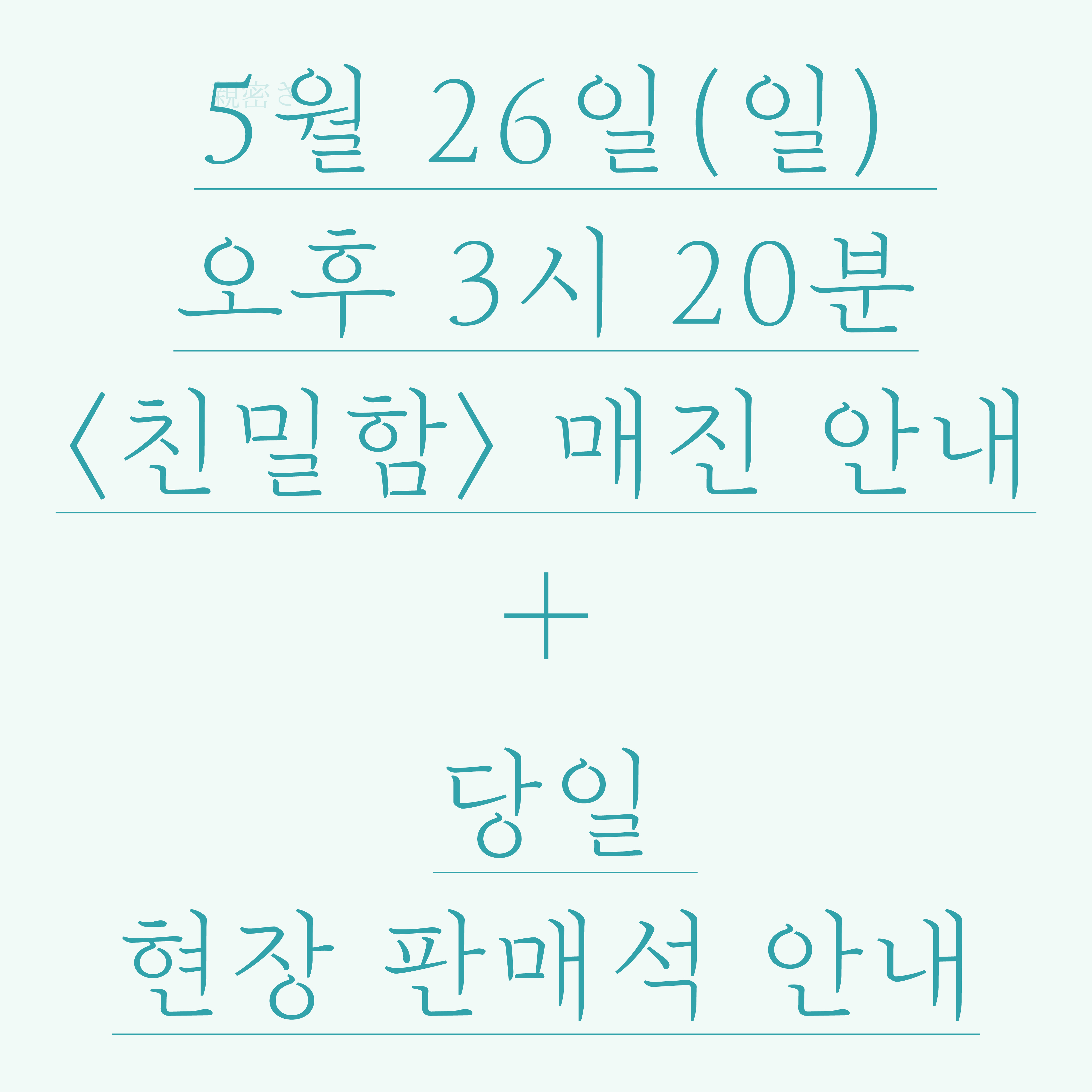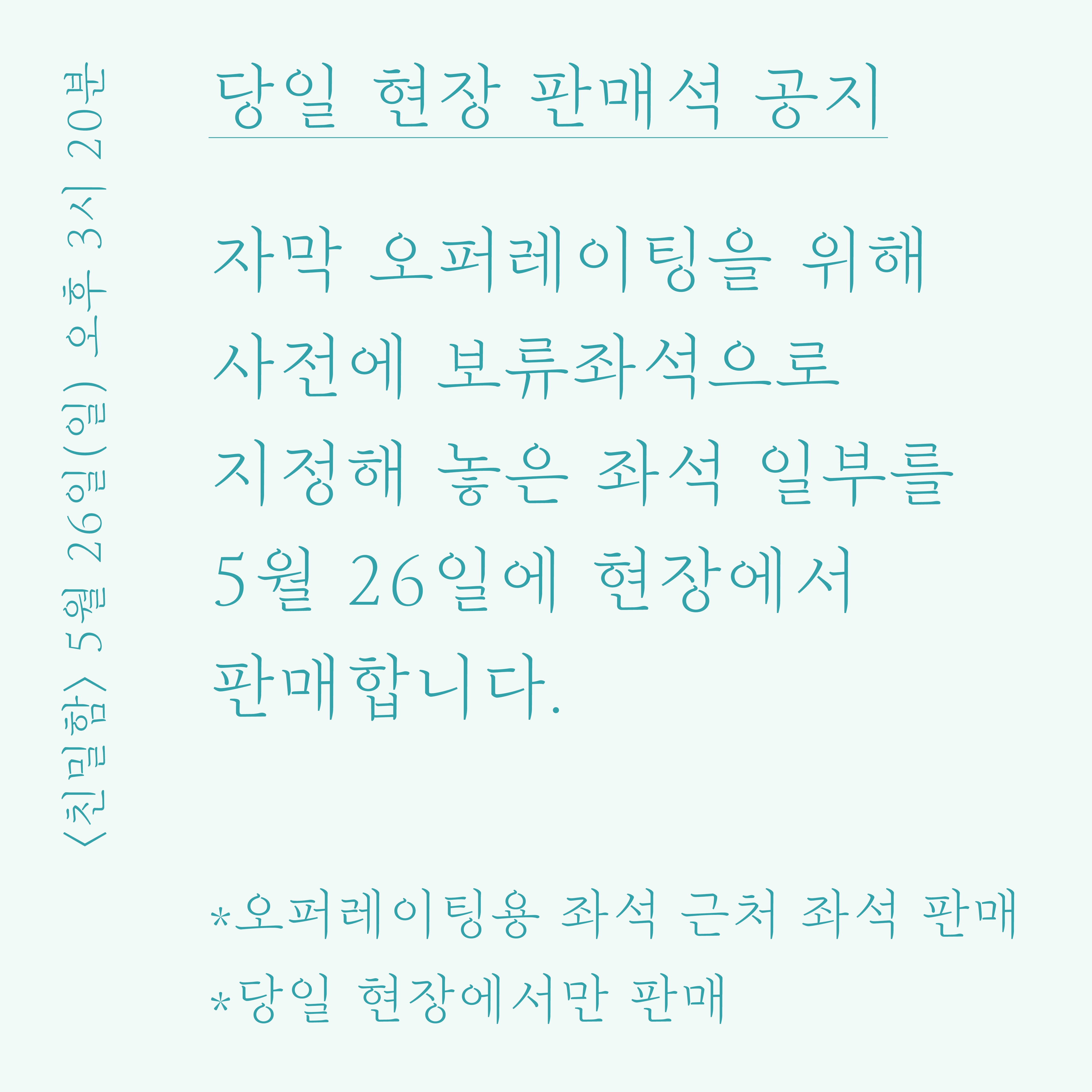 5월 26일(일) 오후 3시 20분 <친밀함> 매진 안내