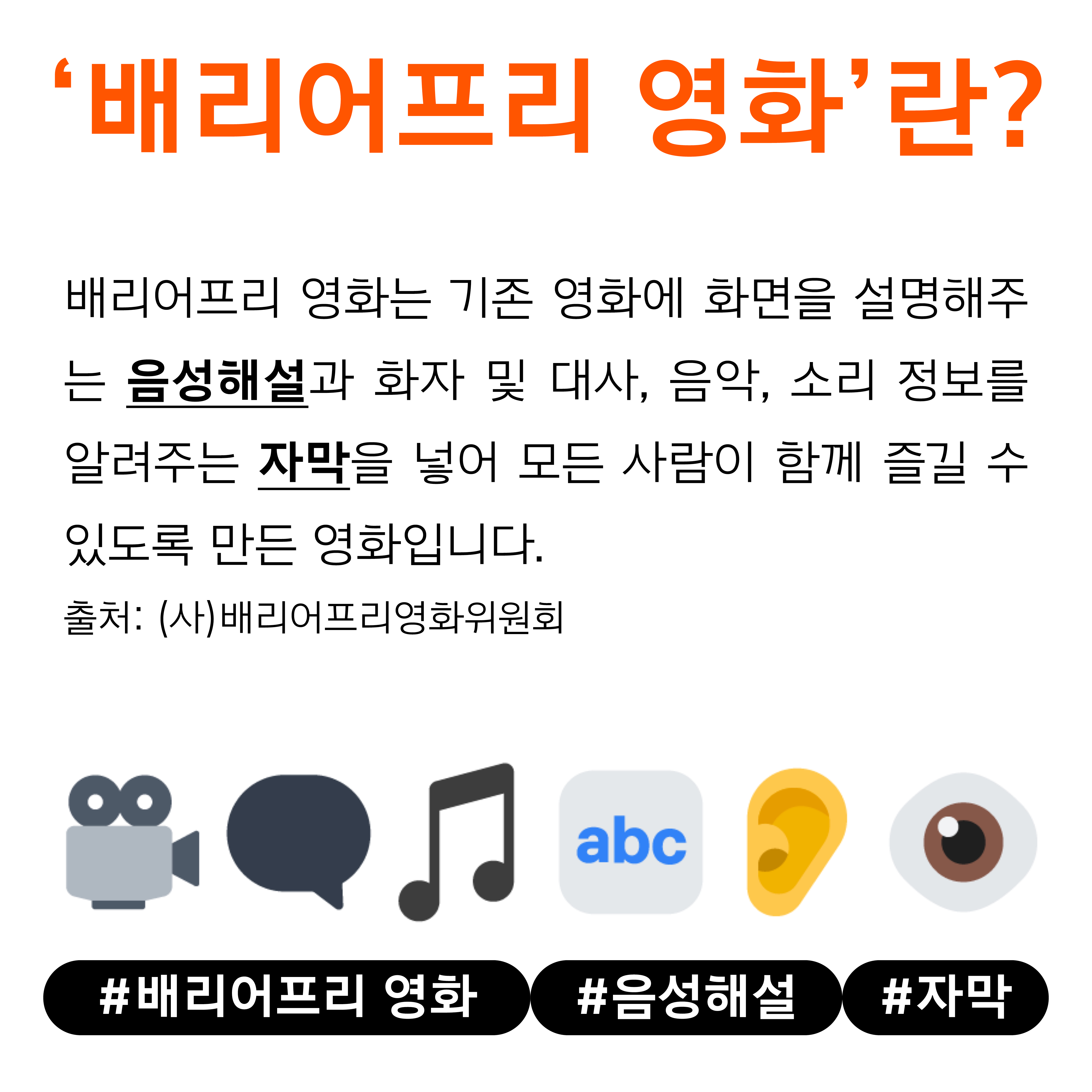 *영화가 배리어프리일 때 더 재밌게 즐길 수 있는 분들이 주변에 있다면 많이 알려주세요.