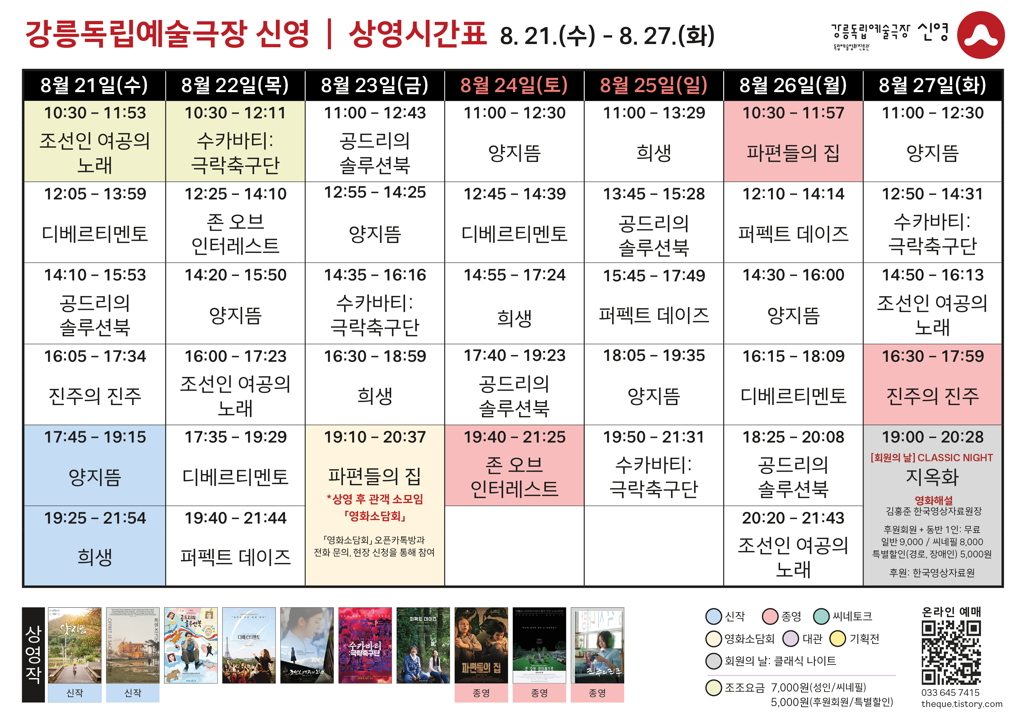[8. 21. - 8. 27.] 상영 시간표
