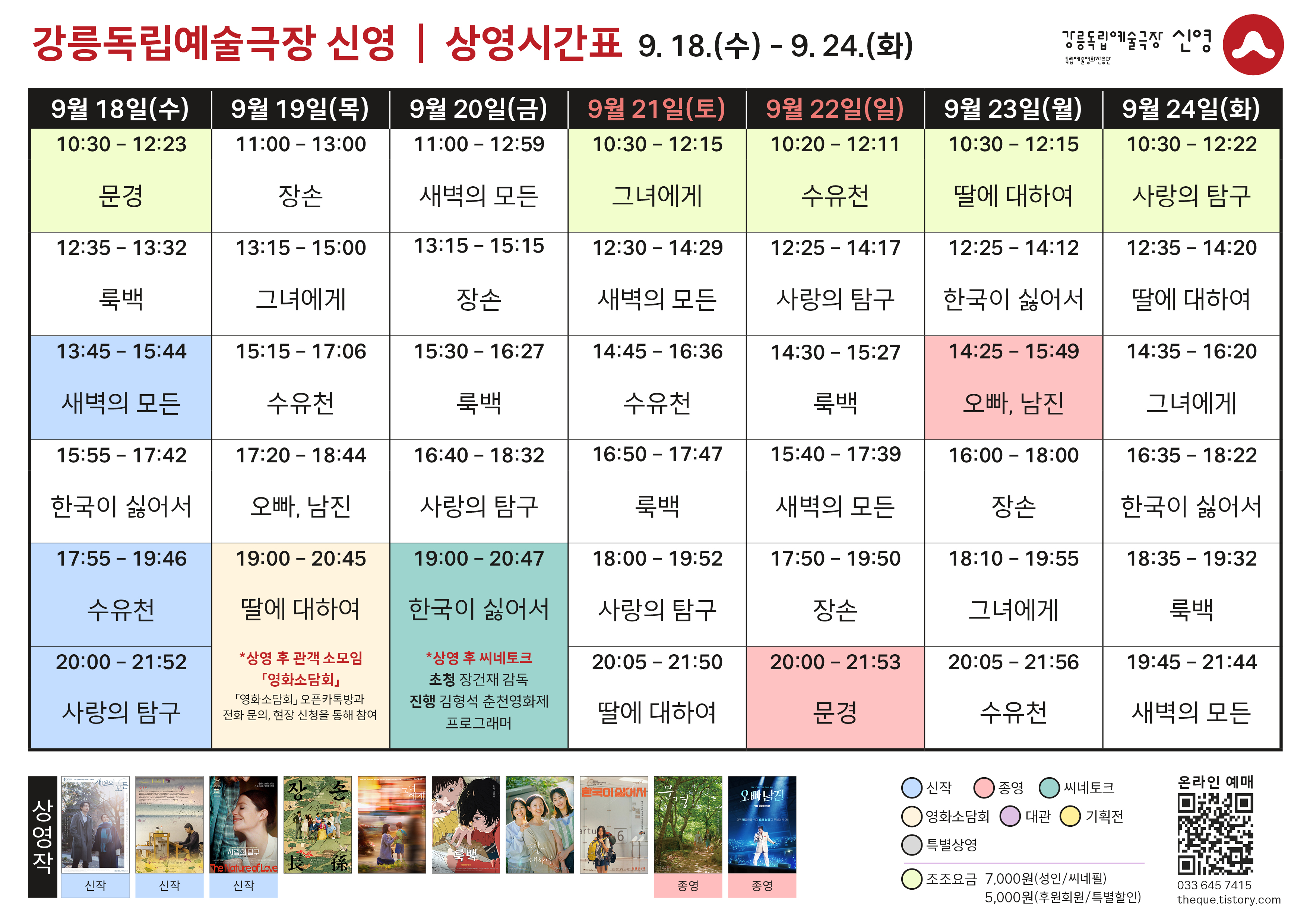 [9. 18. - 9. 24.] 상영 시간표