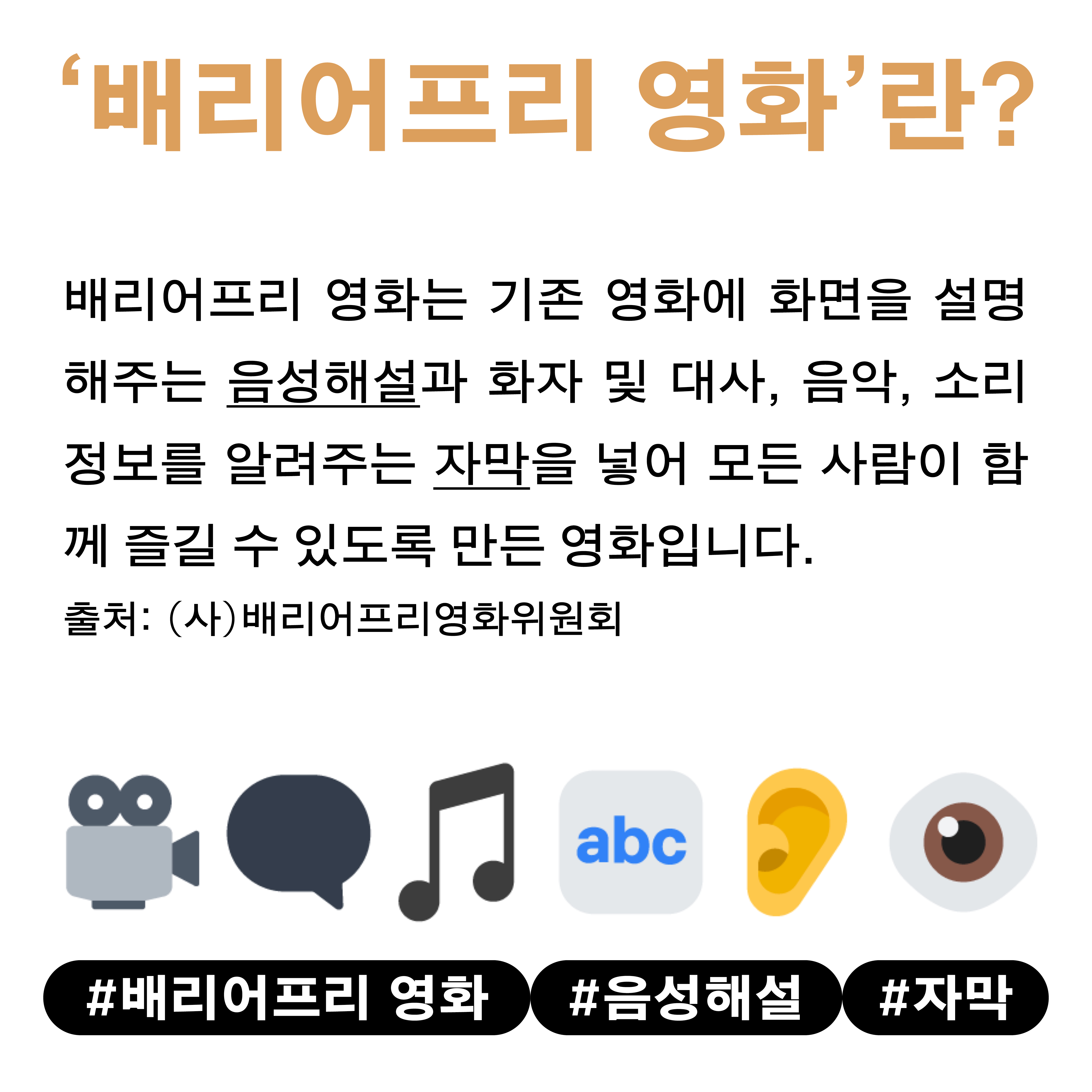*영화가 배리어프리일 때 더 재밌게 즐길 수 있는 분들이 주변에 있다면 많이 알려주세요.