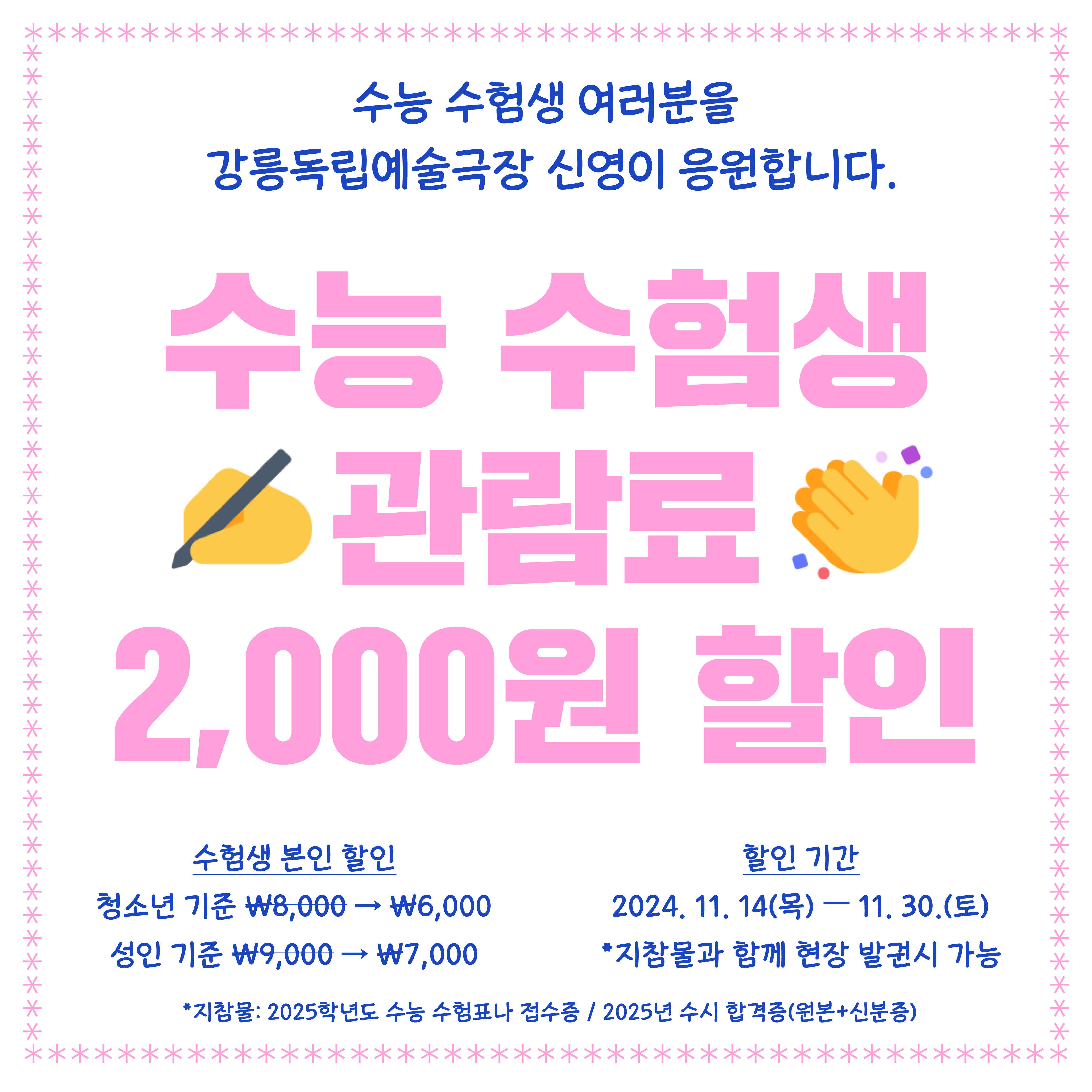 2025학년도 대학수학능력시험을 치른 수험생을 응원하기 위해 관람료를 2,000원 할인해 드립니다.