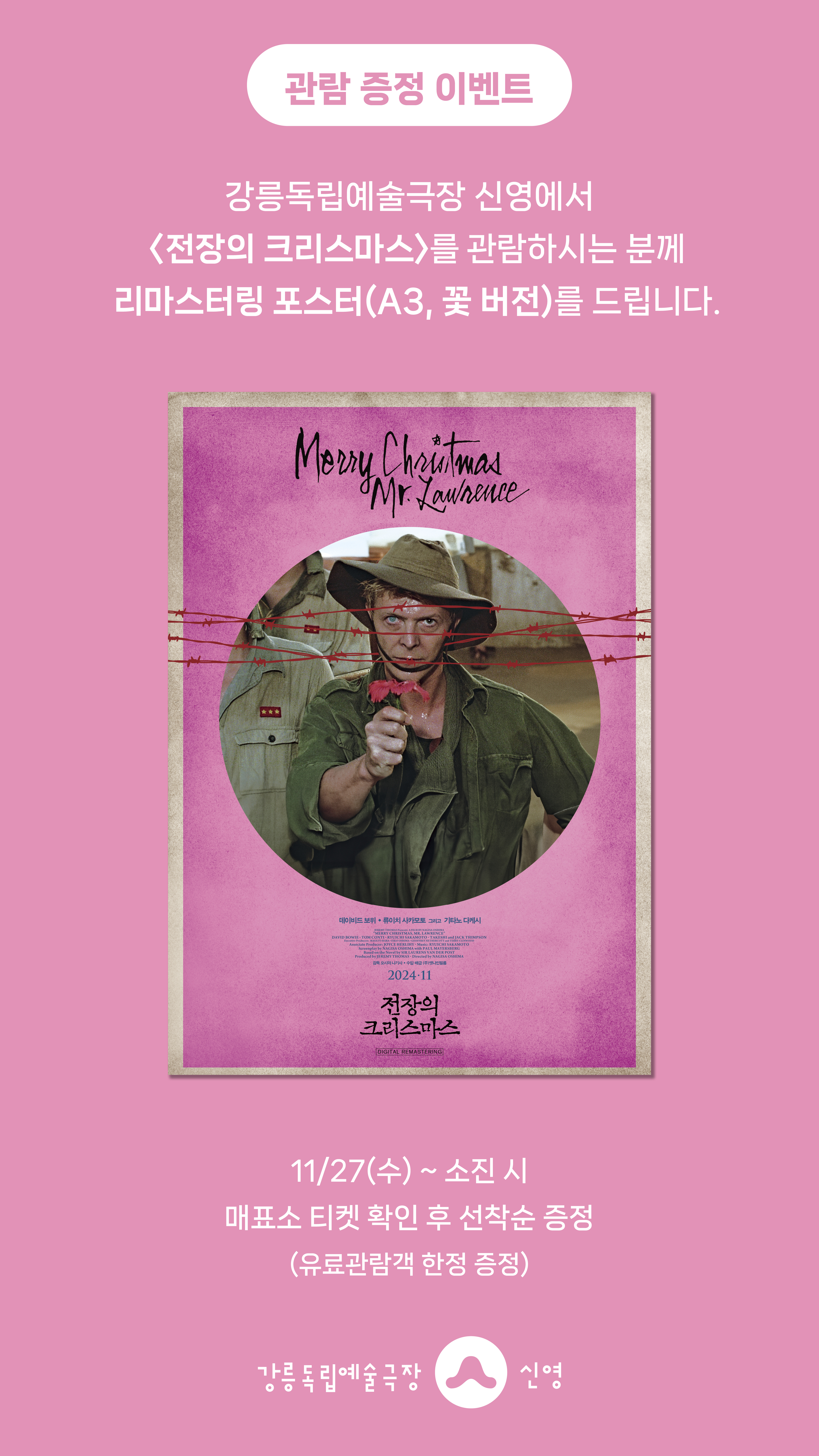 강릉독립예술극장 신영에서 <전장의 크리스마스>를 관람하시는 분께 선착순으로 리마스터링 포스터(A3, 꽃버전)를 드립니다.