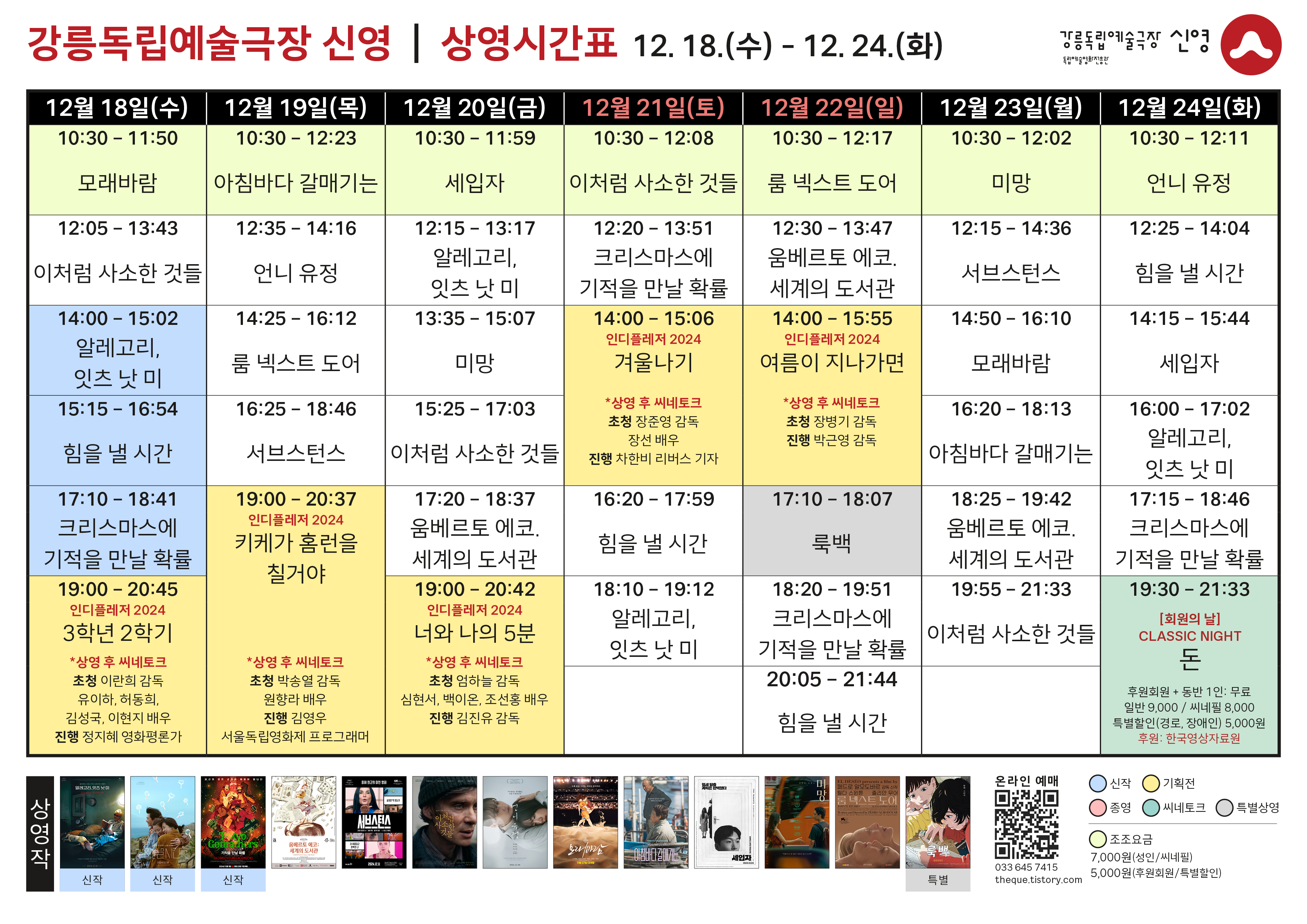 *상영 시간표는 매주 일요일 게시됩니다.