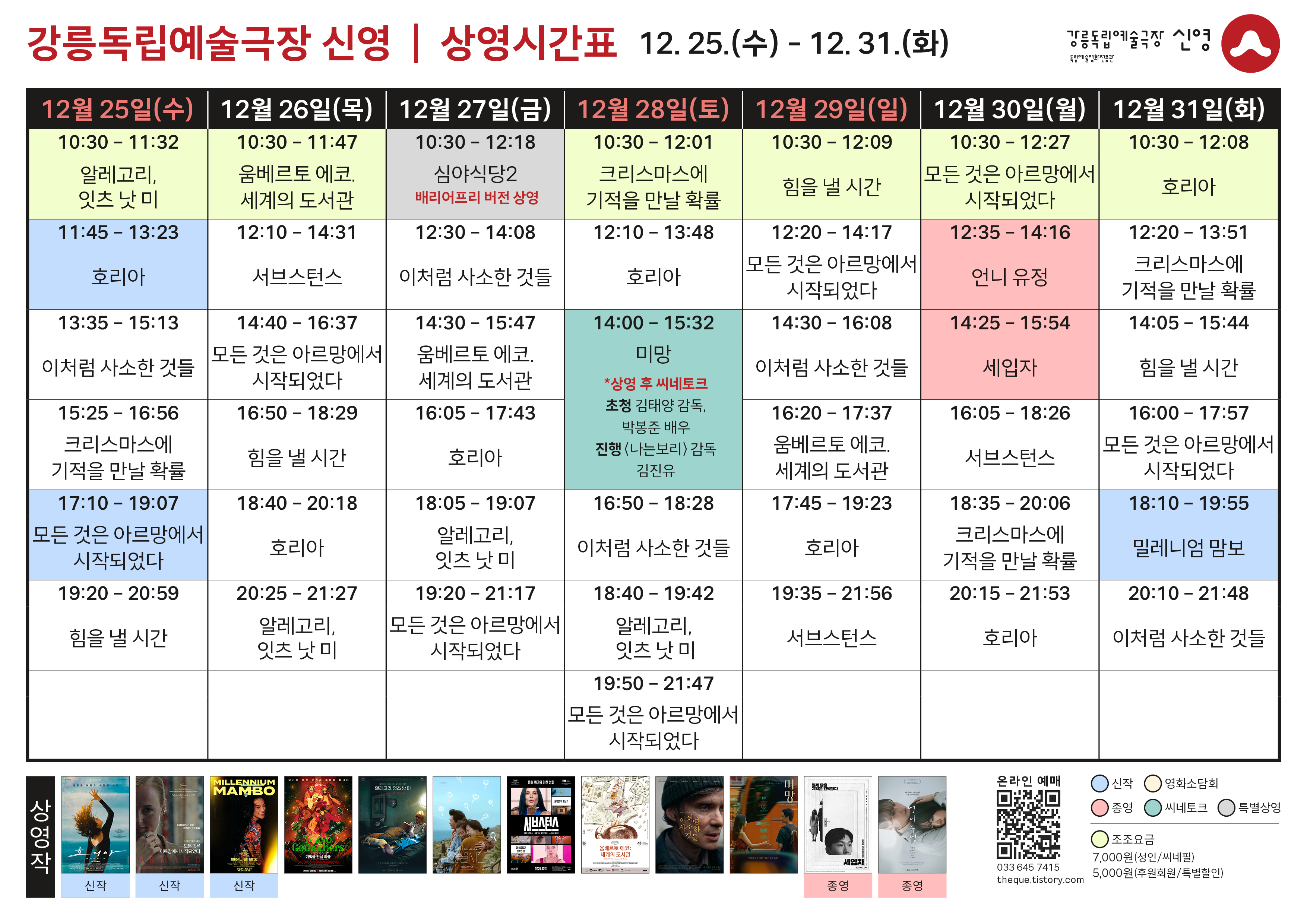 *상영 시간표는 매주 일요일 게시됩니다.