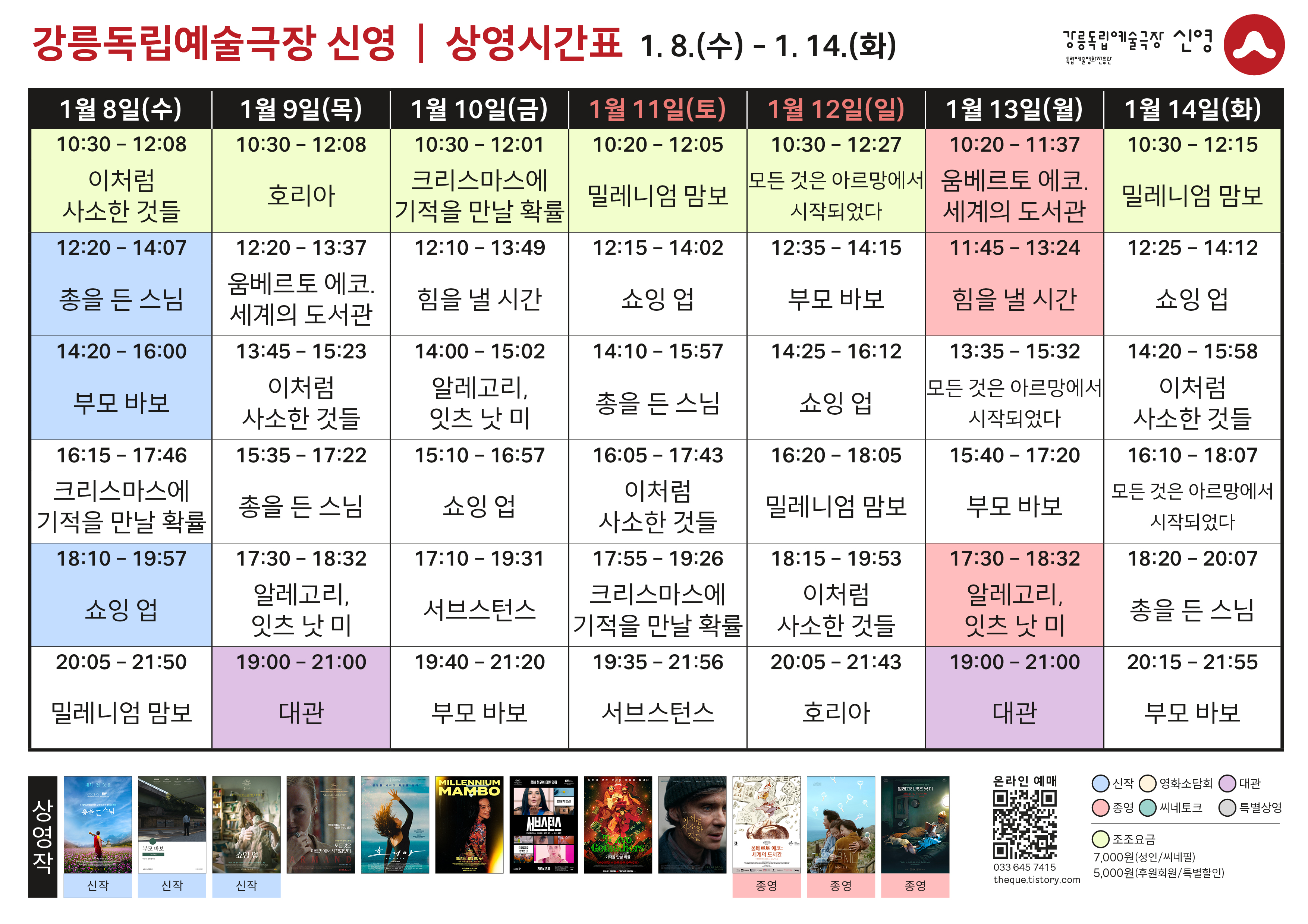 *상영 시간표는 매주 일요일 게시됩니다.