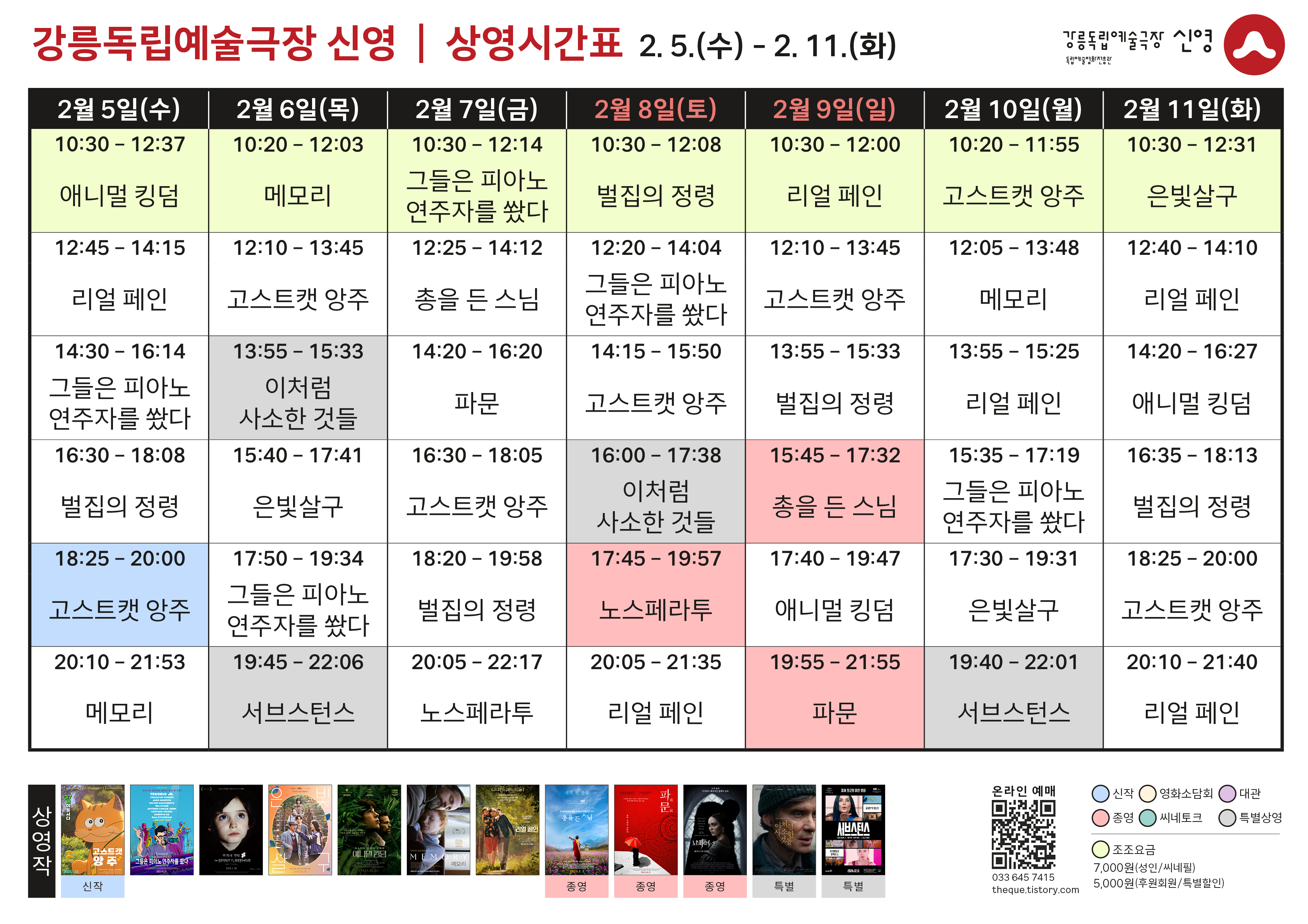 | [1. 29. - 2. 4.] 상영 시간표 (0) | 2025.01.26 |