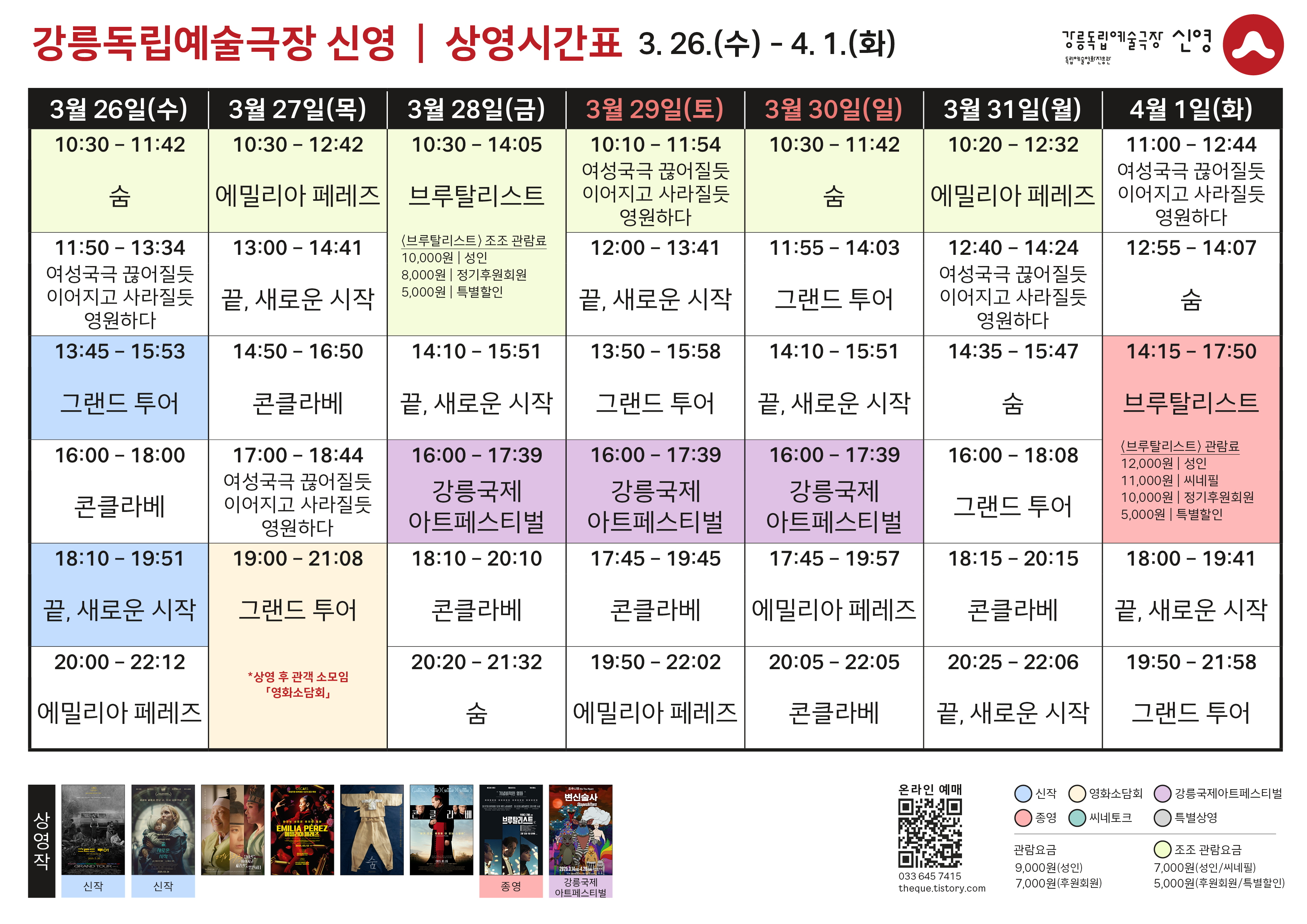 | [4. 2. - 4. 8.] 상영 시간표 (0) | 2025.03.30 |