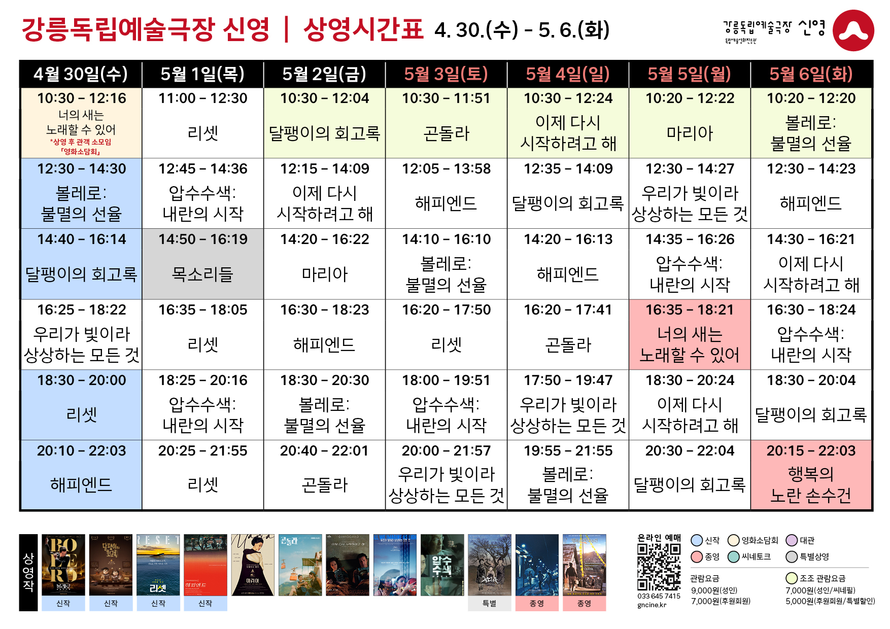 *상영 시간표는 매주 일요일 게시됩니다.